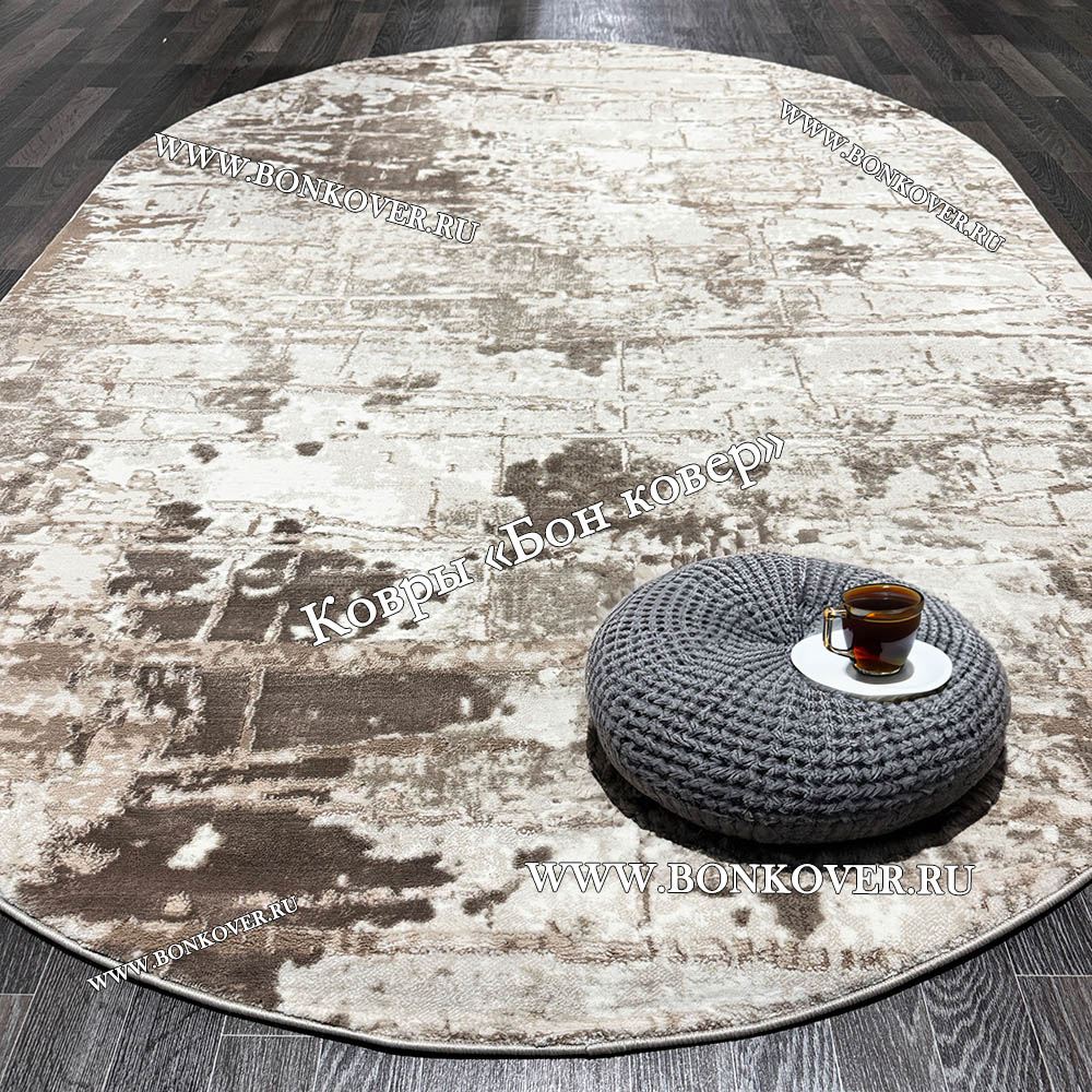 Элегантный Абстрактный ковер дизайн 76 Бежево-коричневый Овал наполняет интерьер вашего дома теплом и уютом, гармонично сочетает в себе изящество и стиль. Он изготовлен из высококачественных материалов, прочный и долговечный.