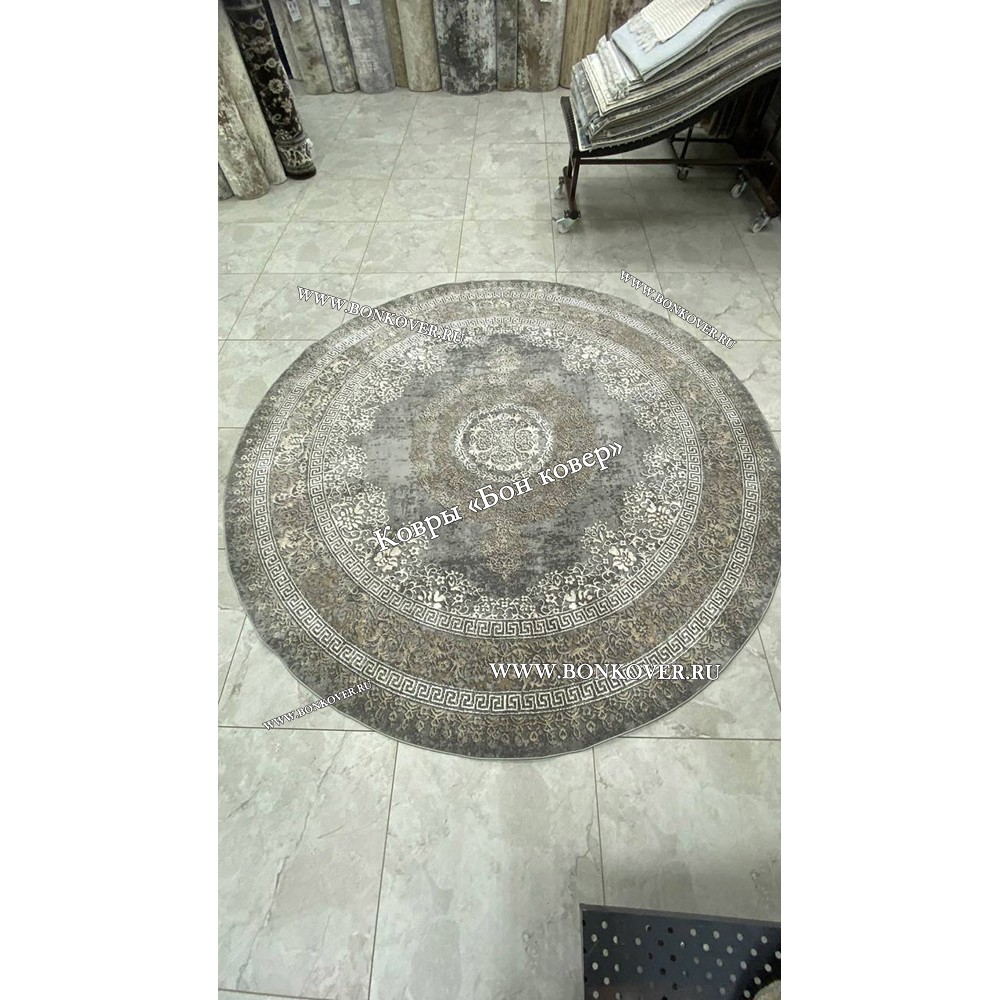 Импозантный Классический ковер дизайн 85 Серый с коричневым круг наполняет интерьер вашего дома теплом и уютом, гармонично сочетает в себе изящество и стиль. Он выполнен из современных материалов, комфортный и долговечный.
