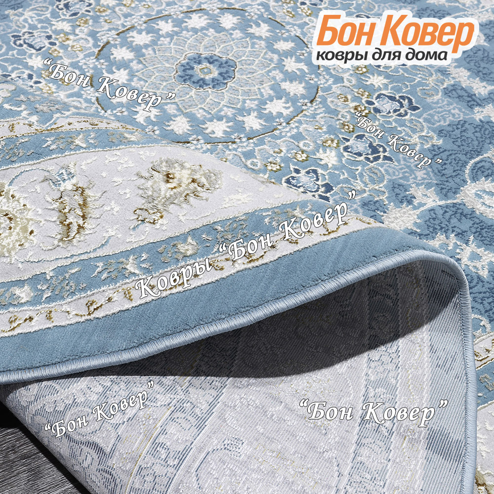 Ковер Для гостиной дизайн 184 Турция Голубой Овал NN станет превосходным дополнением интерьера, оформленного в современном или классическом стиле. Мягкое, но прочное, ковровое покрытие обеспечивает тепло- и шумоизоляцию, отличается длительным периодом эксплуатации, надежностью, экологичностью и высокой износостойкостью, является отличной защитой от повышенной влажности в комнате и утеплителем для холодного пола. Благодаря качеству материалов, ковер не деформируется, сохраняет первоначальный вид под тяжестью предметов мебели. За его поверхностью легко ухаживать.