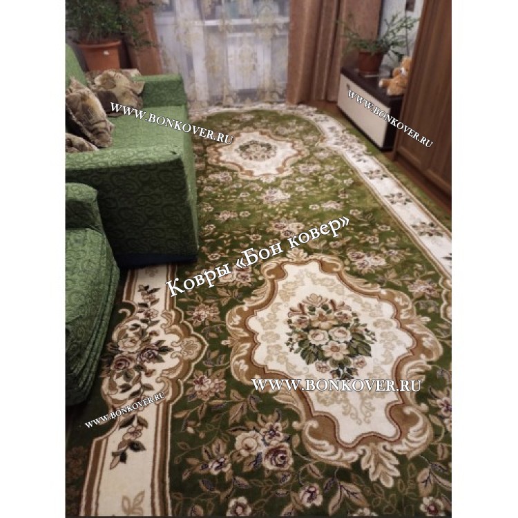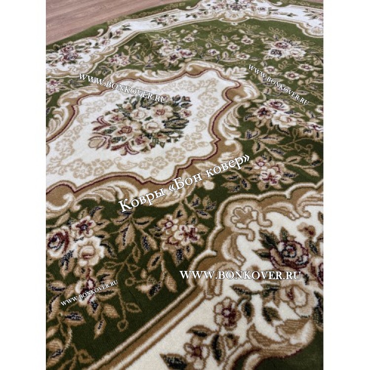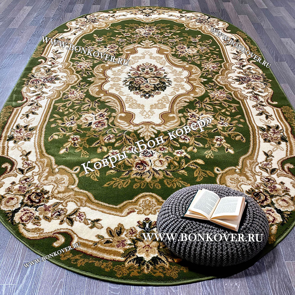 Ковер для гостиной дизайн 26354 New Зеленый Овал станет блестящим дополнением интерьера, оформленного в современном или классическом стиле. Мягкое, но прочное, ковровое изделие обеспечивает тепло- и шумоизоляцию, отличается длительным сроком эксплуатации, пожаробезопасностью, экологичностью и высокой износостойкостью, является отличной гарантией от повышенной влажности в помещении и утеплителем для холодного пола. Благодаря качеству материалов, ковер не деформируется, сохраняет форму под тяжестью предметов мебели. За его поверхностью легко ухаживать.
