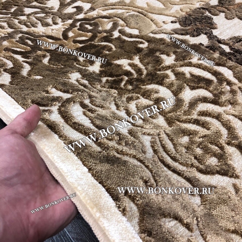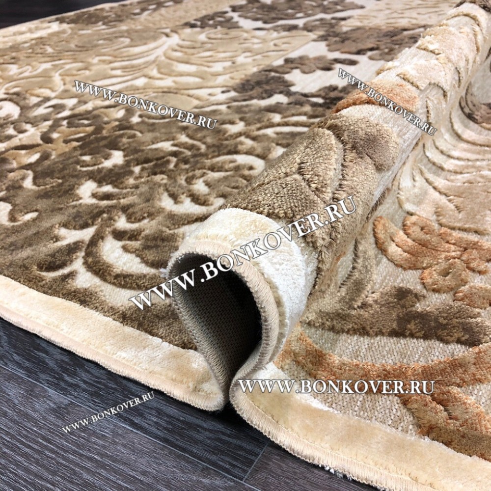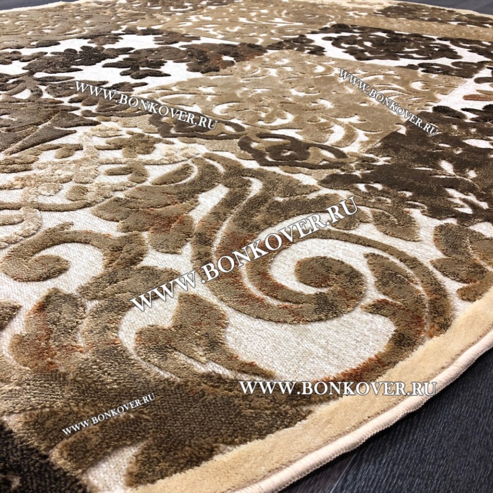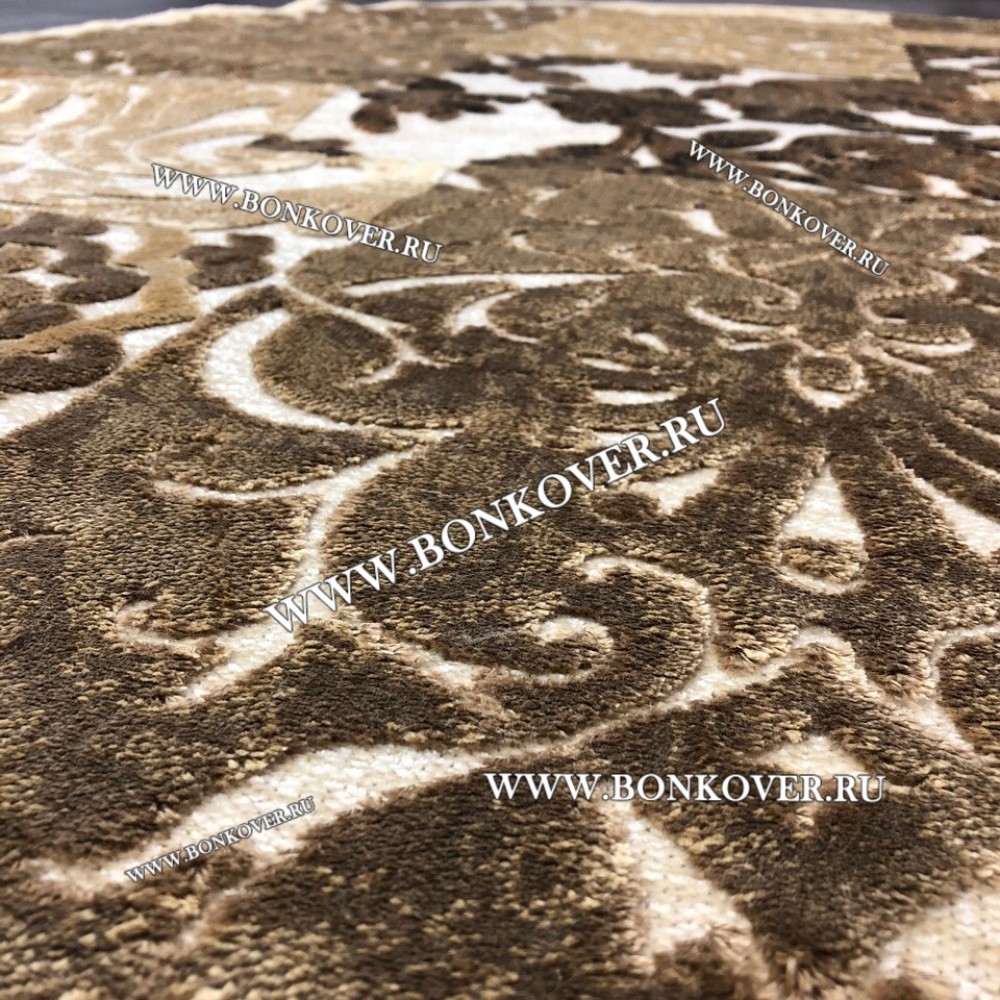 Ковер для Гостиной из Артшелка Дизайн 22 Бежево-Коричневый Круг станет великолепным преображением вашей комнаты, подчеркивая высокий статус хозяина.