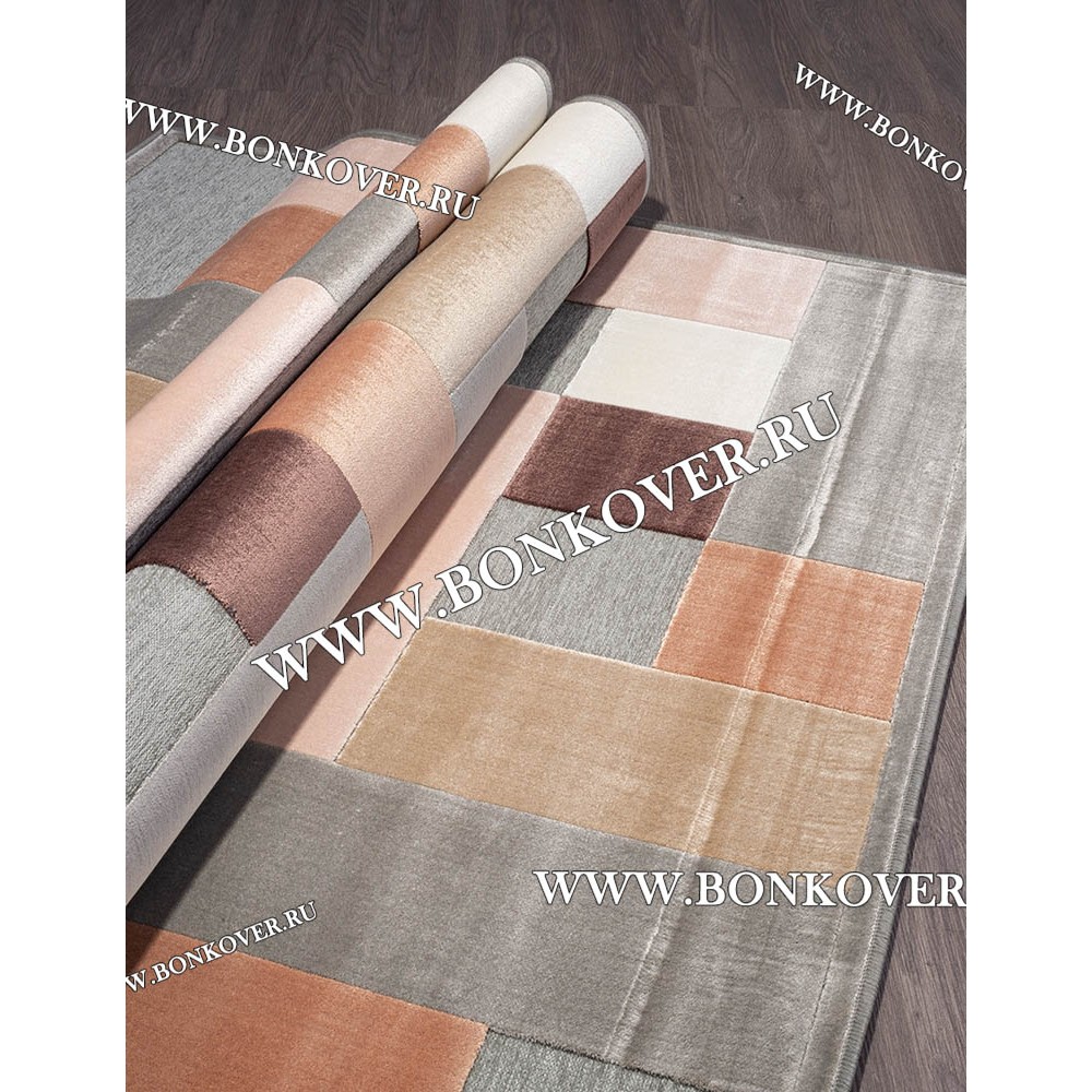 Ковер для гостиной из артшелка дизайн 40 Терракотовый с Серым станет привлекательным дополнением интерьера, оформленного в современном или классическом стиле. Мягкое, но прочное, ковровое покрытие обеспечивает тепло- и шумоизоляцию, отличается длительным сроком эксплуатации, надежностью, экологичностью и высокой износостойкостью, является отличной защитой от повышенной влажности в комнате и утеплителем для холодного пола. Благодаря качеству материалов, ковер не деформируется, сохраняет форму под тяжестью предметов мебели. За его поверхностью легко ухаживать.