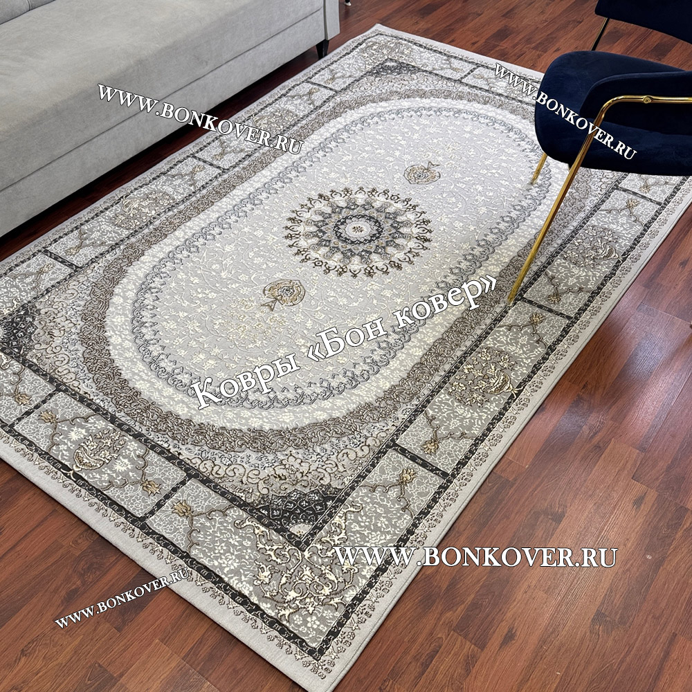 Ковер Для гостиной Турция дизайн 196 Серый станет стильным преображением жилого помещения, подчеркивая высокий статус хозяина.