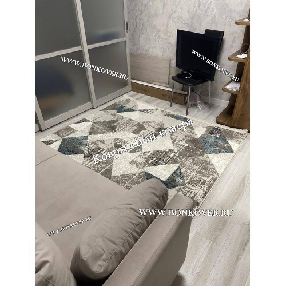 Шикарный Ковер Коротковорсный Лайт Дизайн 01 Синий с Серым наполняет интерьер комнаты теплом и уютом, гармонично сочетает в себе изящество и стиль. Он изготовлен из современных материалов, прочный и долговечный.