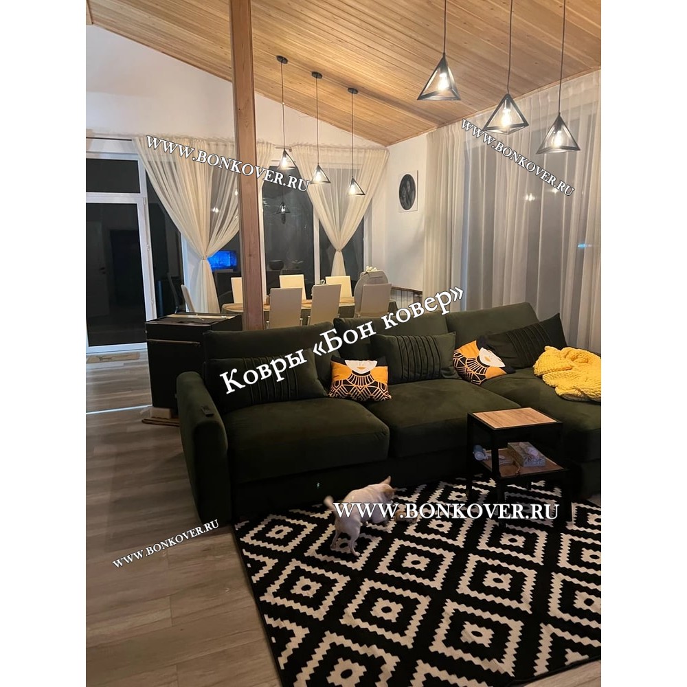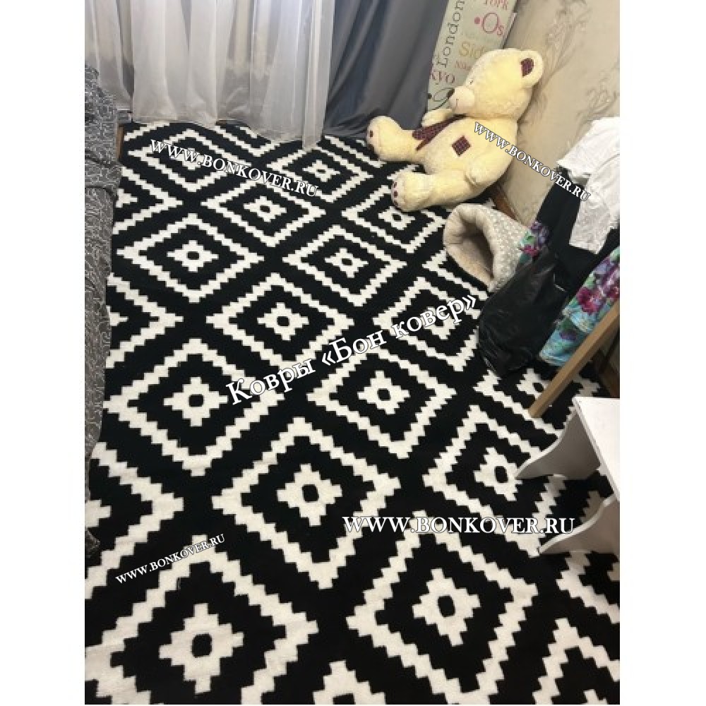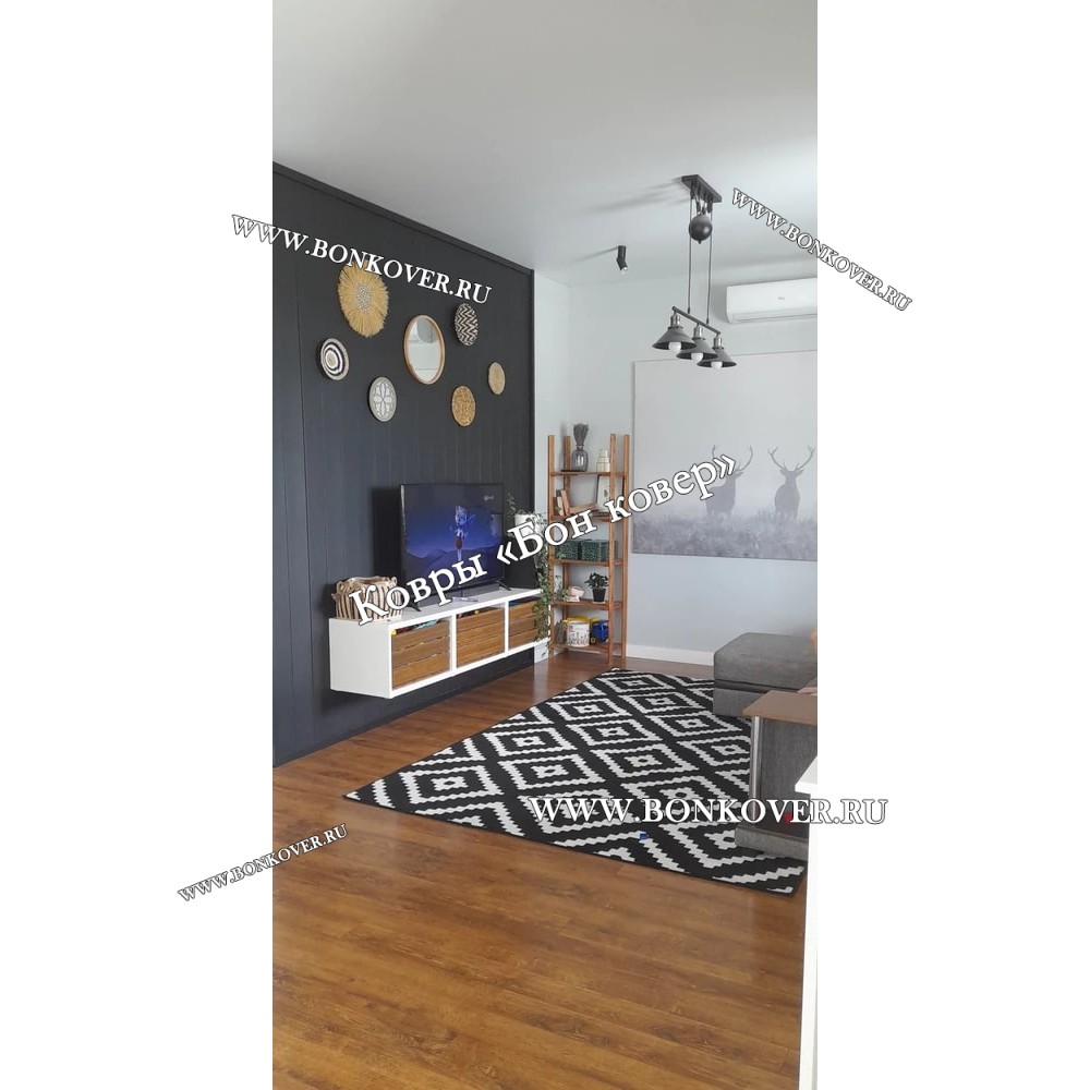 Ковер скандинавский черно-белый станет идеальным дополнением интерьера, оформленного в современном или классическом стиле. Мягкое, но прочное, ковровое изделие обеспечивает тепло- и шумоизоляцию, отличается длительным периодом эксплуатации, надежностью, экологичностью и высокой износостойкостью, является отличной гарантией от повышенной влажности в помещении и утеплителем для холодного пола. Благодаря качеству материалов, ковер не деформируется, сохраняет первоначальный вид под тяжестью предметов мебели. За его поверхностью легко ухаживать.