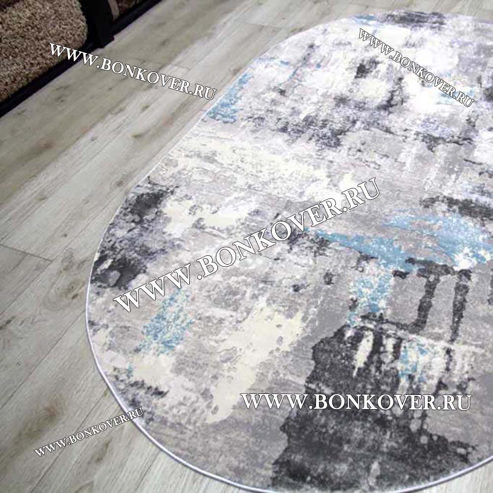 Ковер Турция Современный Дизайн 23 Серый с Голубым Овал станет великолепным преображением вашей комнаты, подчеркивая высокий статус владельца.