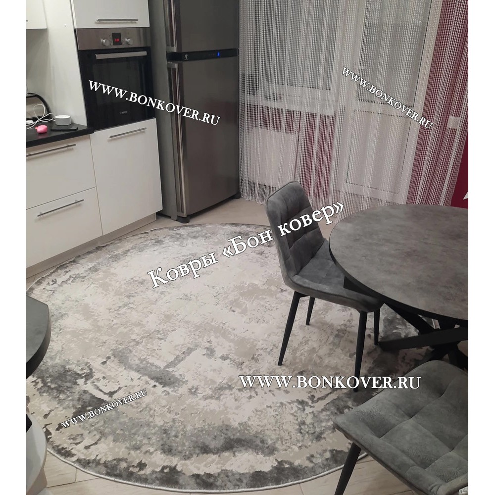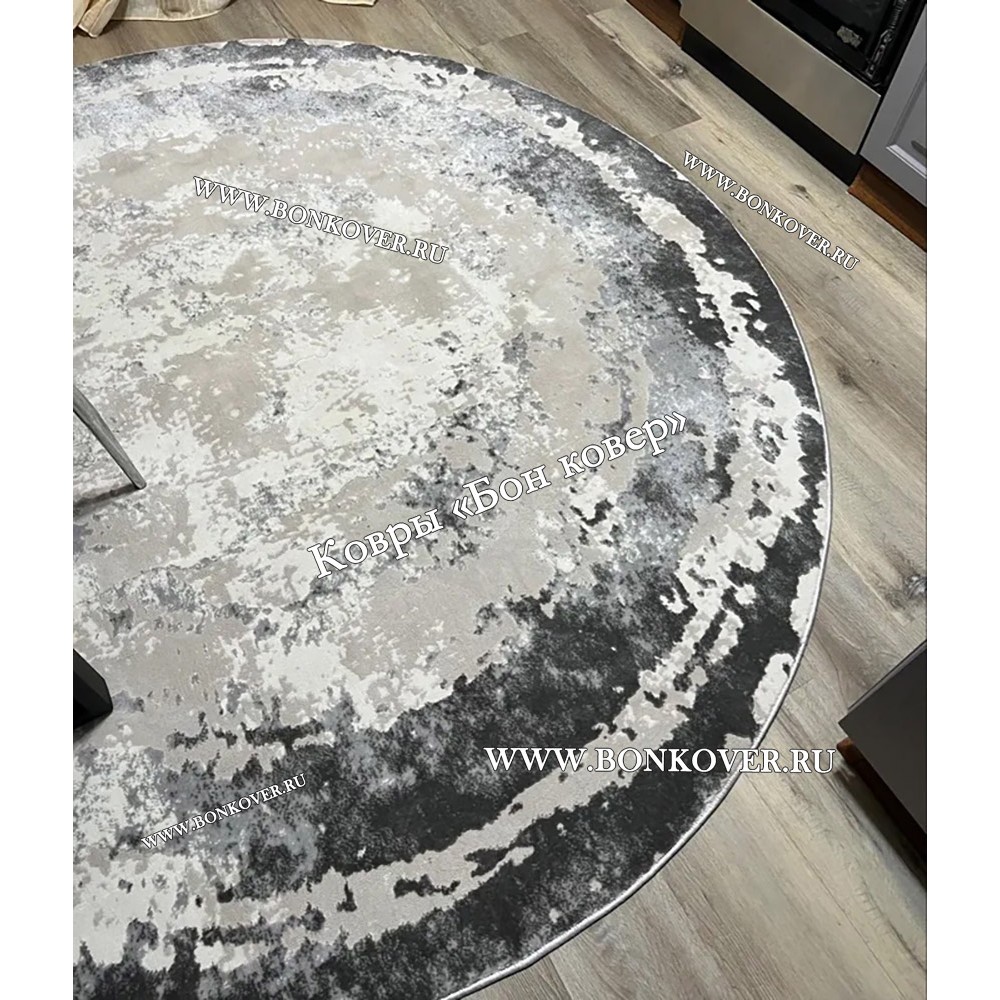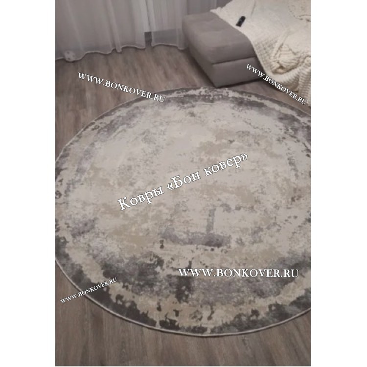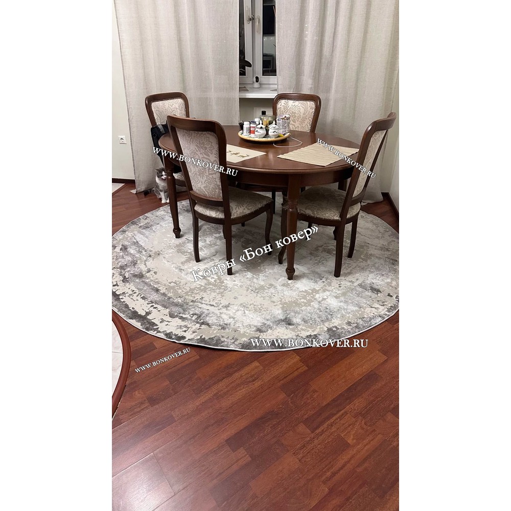 Элегантный Ковер в гостиную дизайн 08 Серый Круг наполняет интерьер жилого пространства теплом и уютом, гармонично сочетает в себе изящество и стиль. Он создан из износостойких материалов, прочный и долговечный.