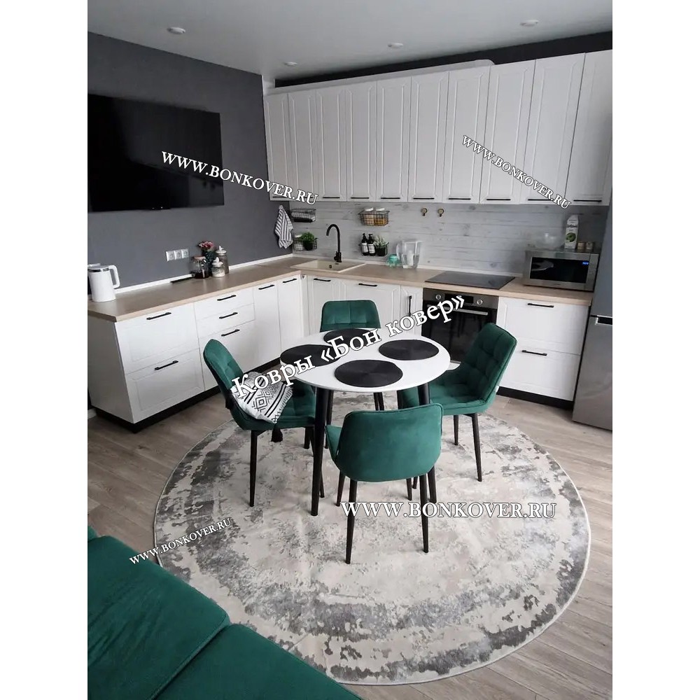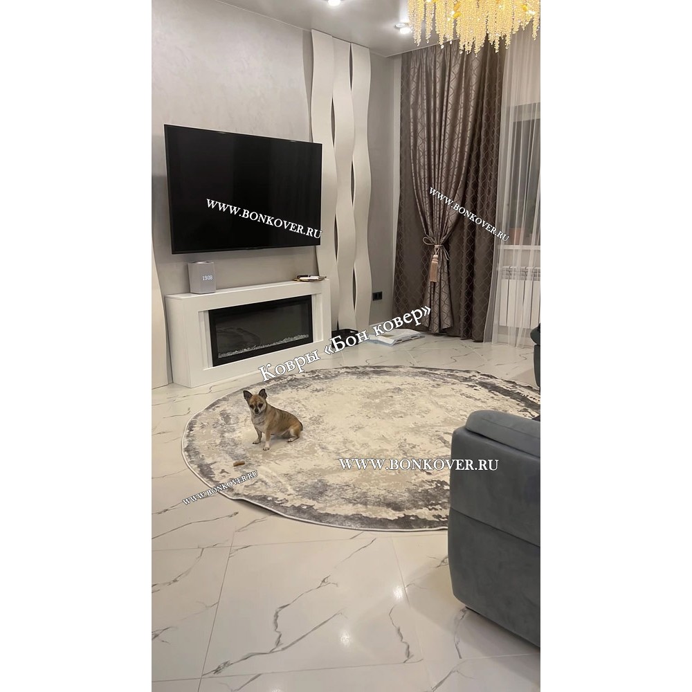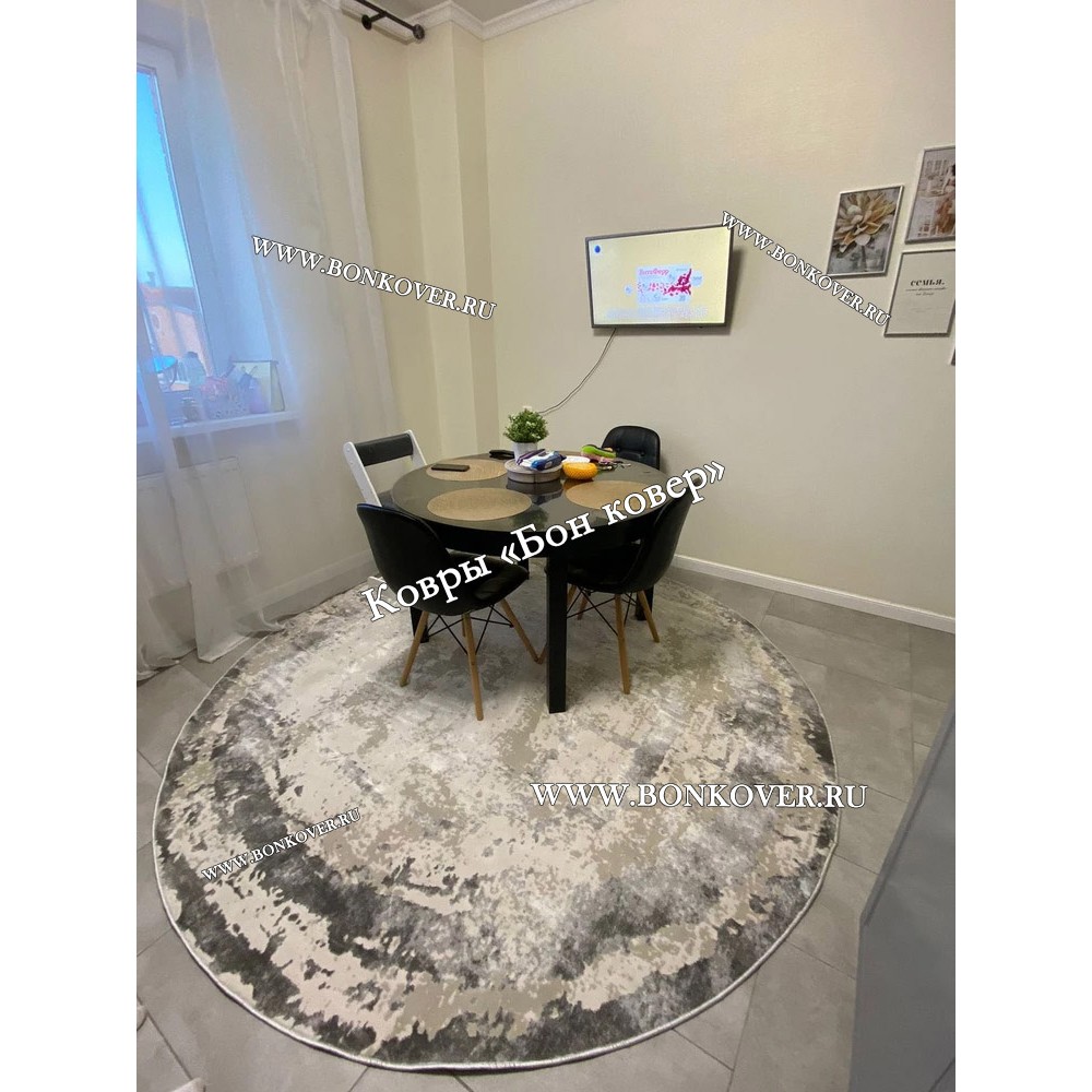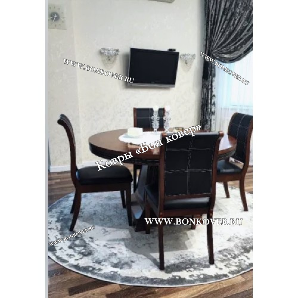 Элегантный Ковер в гостиную дизайн 08 Серый Круг наполняет интерьер жилого пространства теплом и уютом, гармонично сочетает в себе изящество и стиль. Он создан из износостойких материалов, прочный и долговечный.