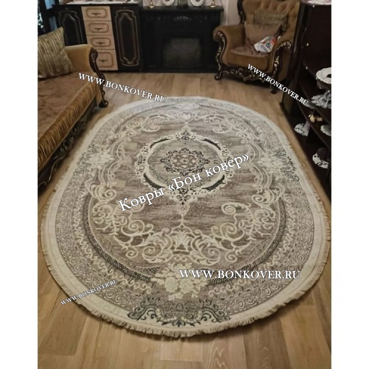 Изящный Овальный Ковер Для Гостиной Медальон Белый с Синим Дизайн 29944 наполняет интерьер жилого пространства теплом и уютом, гармонично сочетает в себе изящество и красоту. Он создан из экологически чистого сырья, прочный и долговечный.