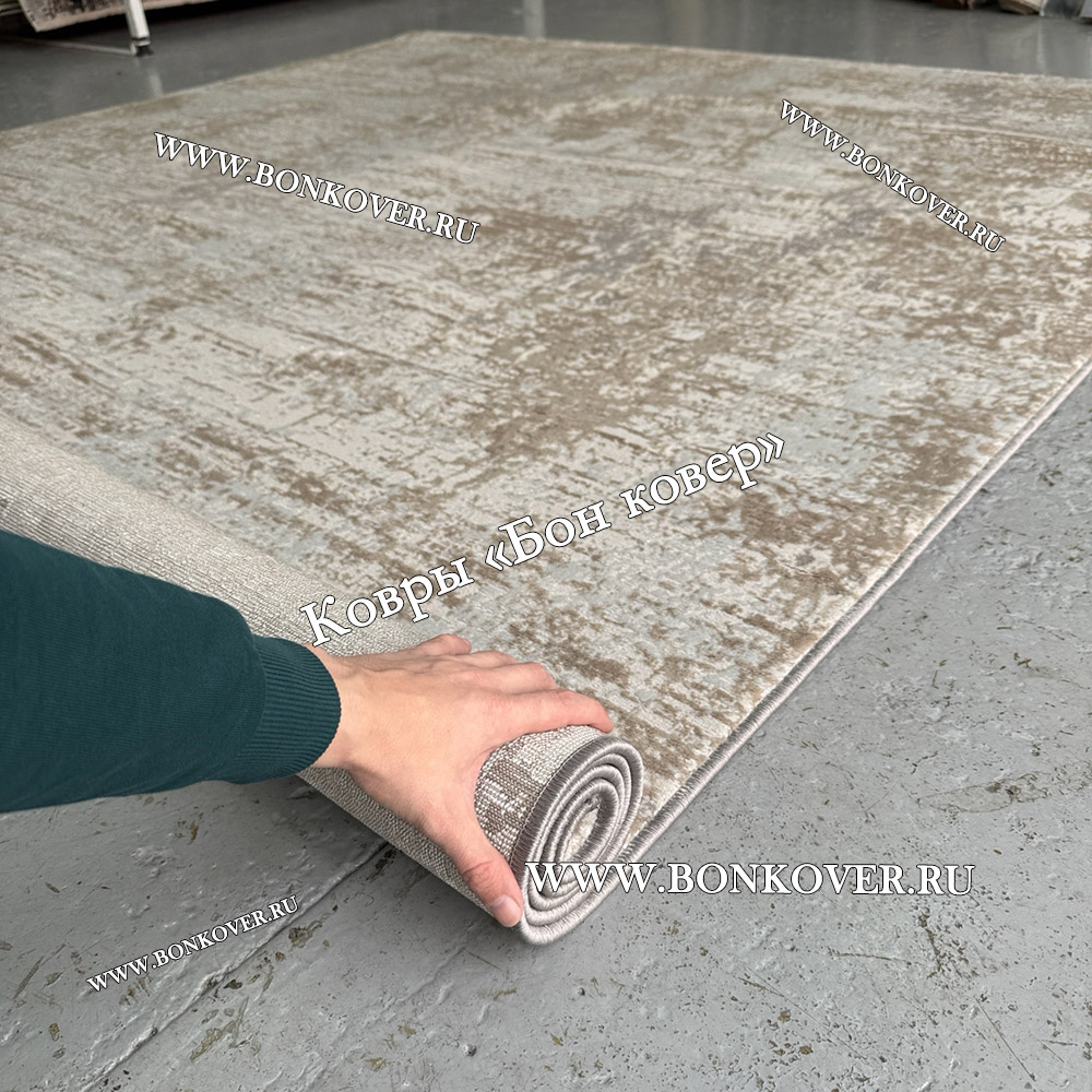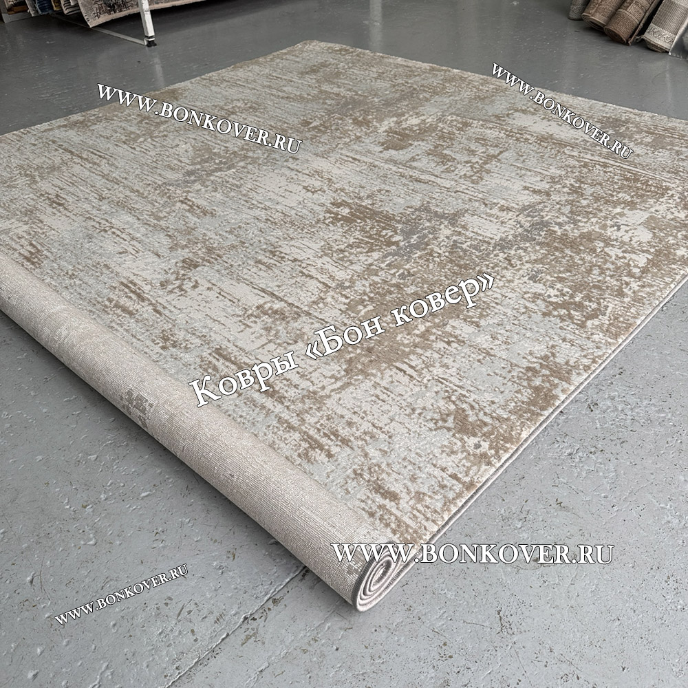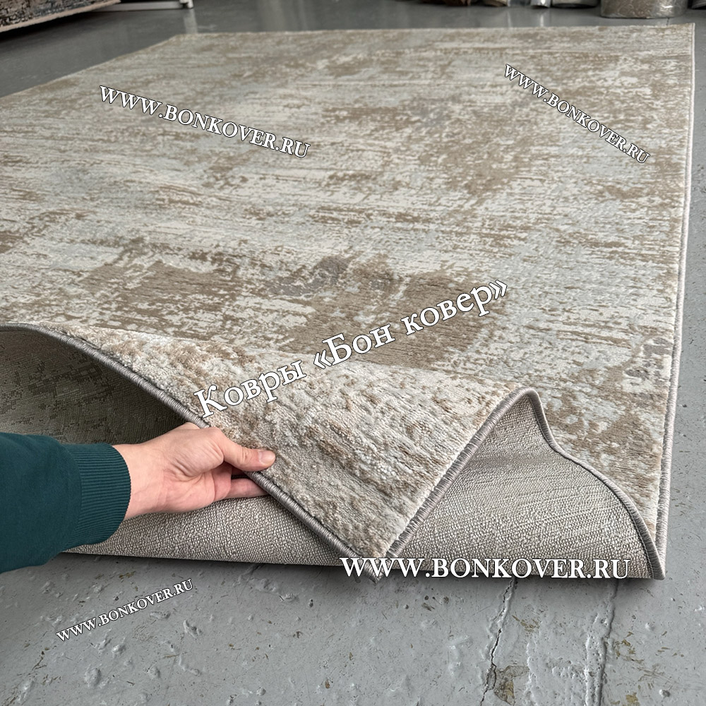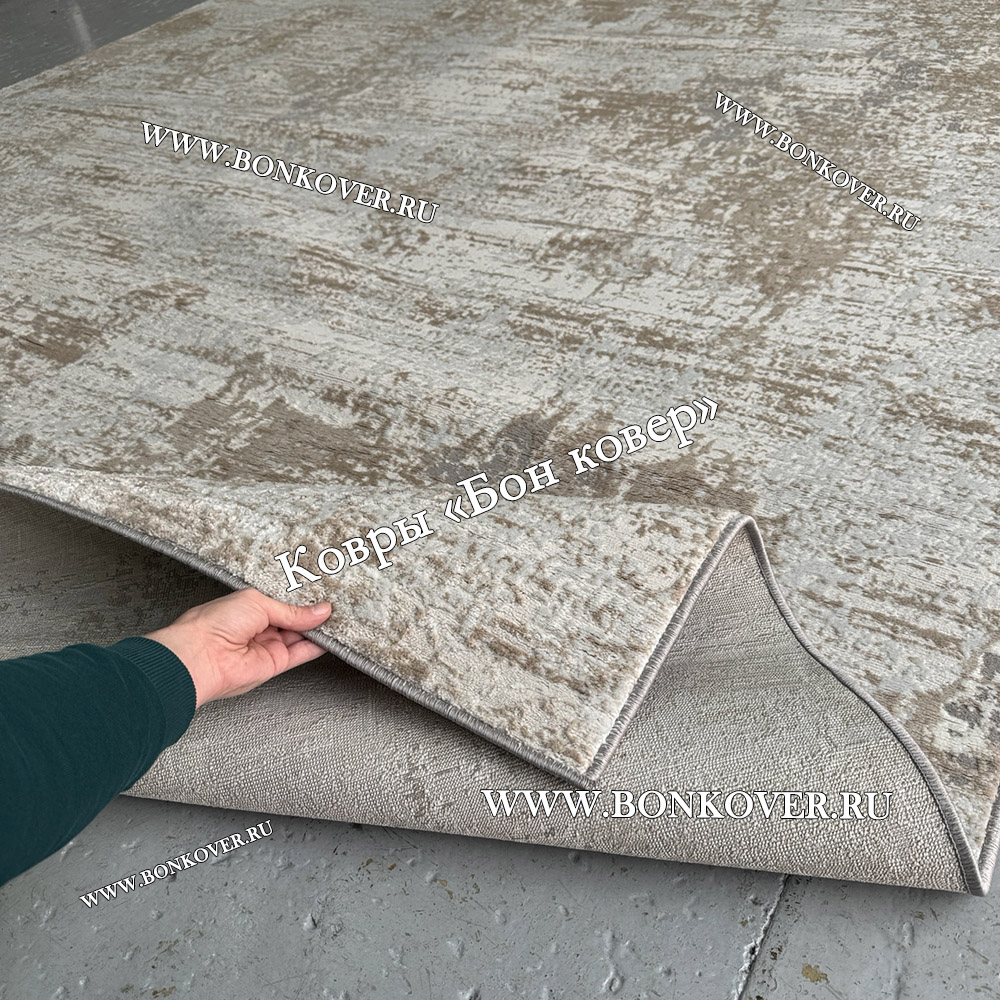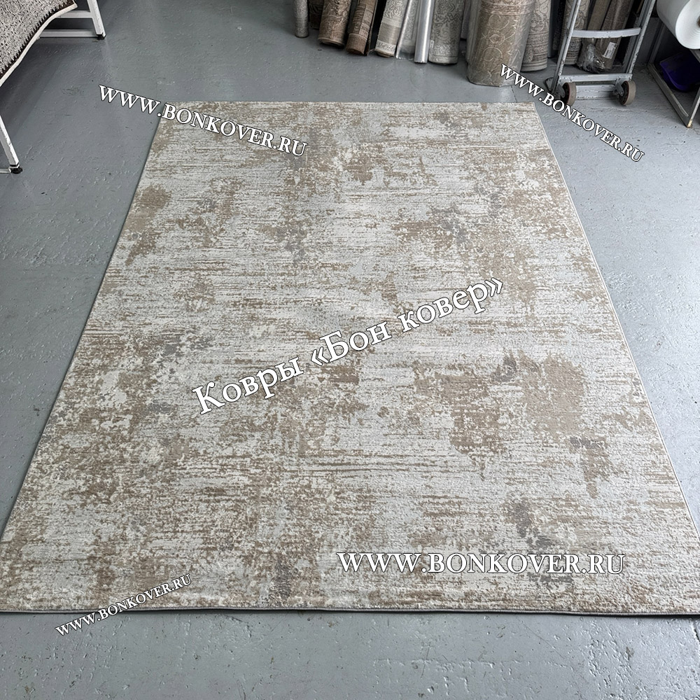 Элегантный Современный Ковер Дизайн 046 Беж с Серым наполняет интерьер комнаты теплом и уютом, гармонично сочетает в себе изящество и стиль. Он соткан из износостойких материалов, прочный и долговечный.