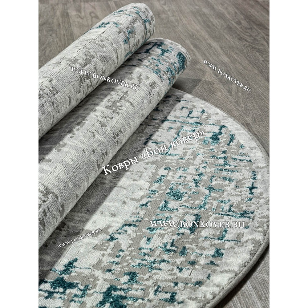 Импозантный Современный ковер для комнаты 08 Бирюзовый Овал наполняет интерьер помещения теплом и уютом, гармонично сочетает в себе изящество и стиль. Он соткан из износостойких материалов, комфортный и долговечный.