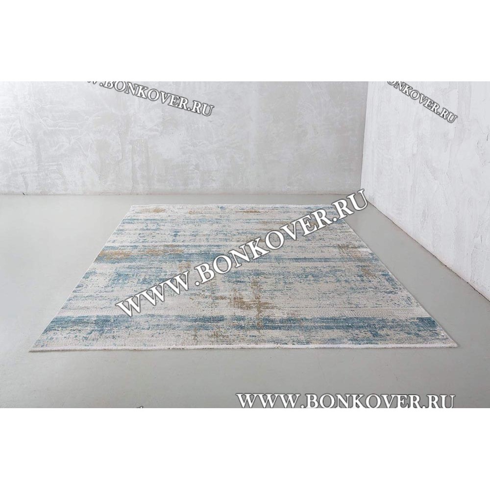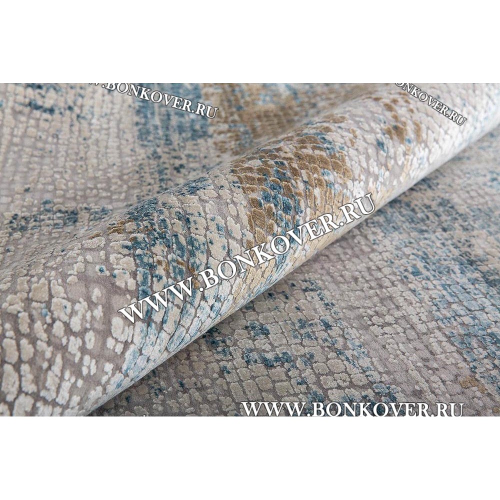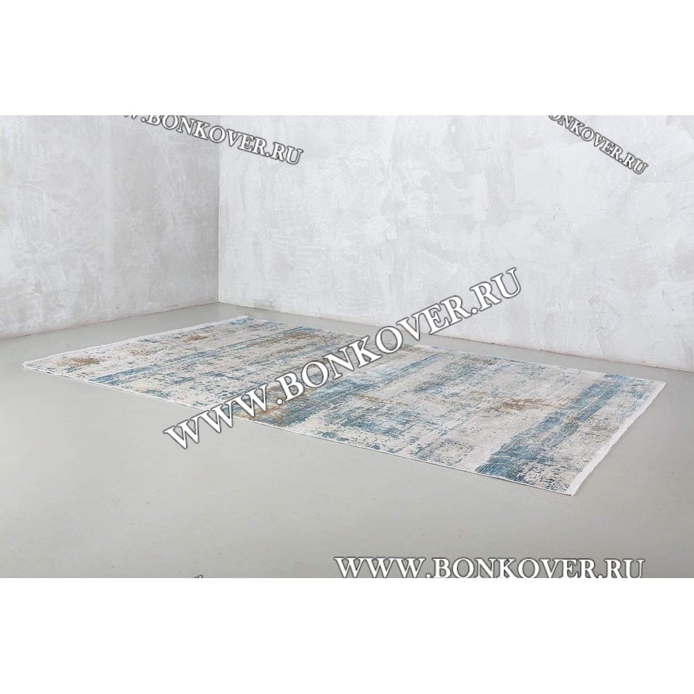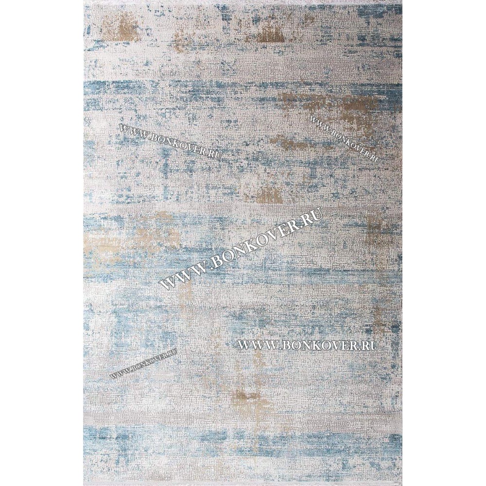 Высокоплотный Премиальный Ковер из Артшелка Дизайн 02 Голубой с Бежевым