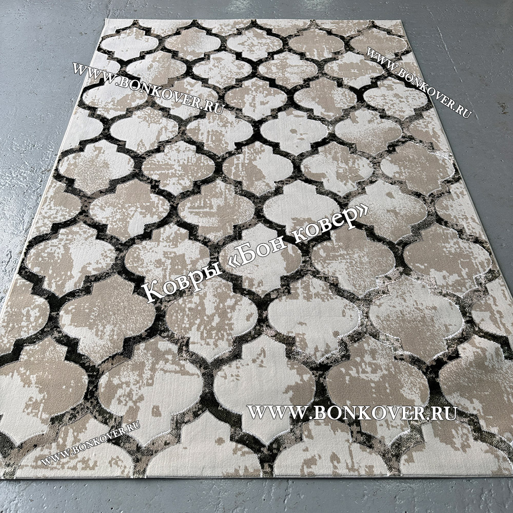 Импозантный Турецкий прямоугольный ковер серый дизайн 84 наполняет интерьер комнаты теплом и уютом, гармонично сочетает в себе изящество и стиль. Он изготовлен из высококачественного сырья, прочный и долговечный.