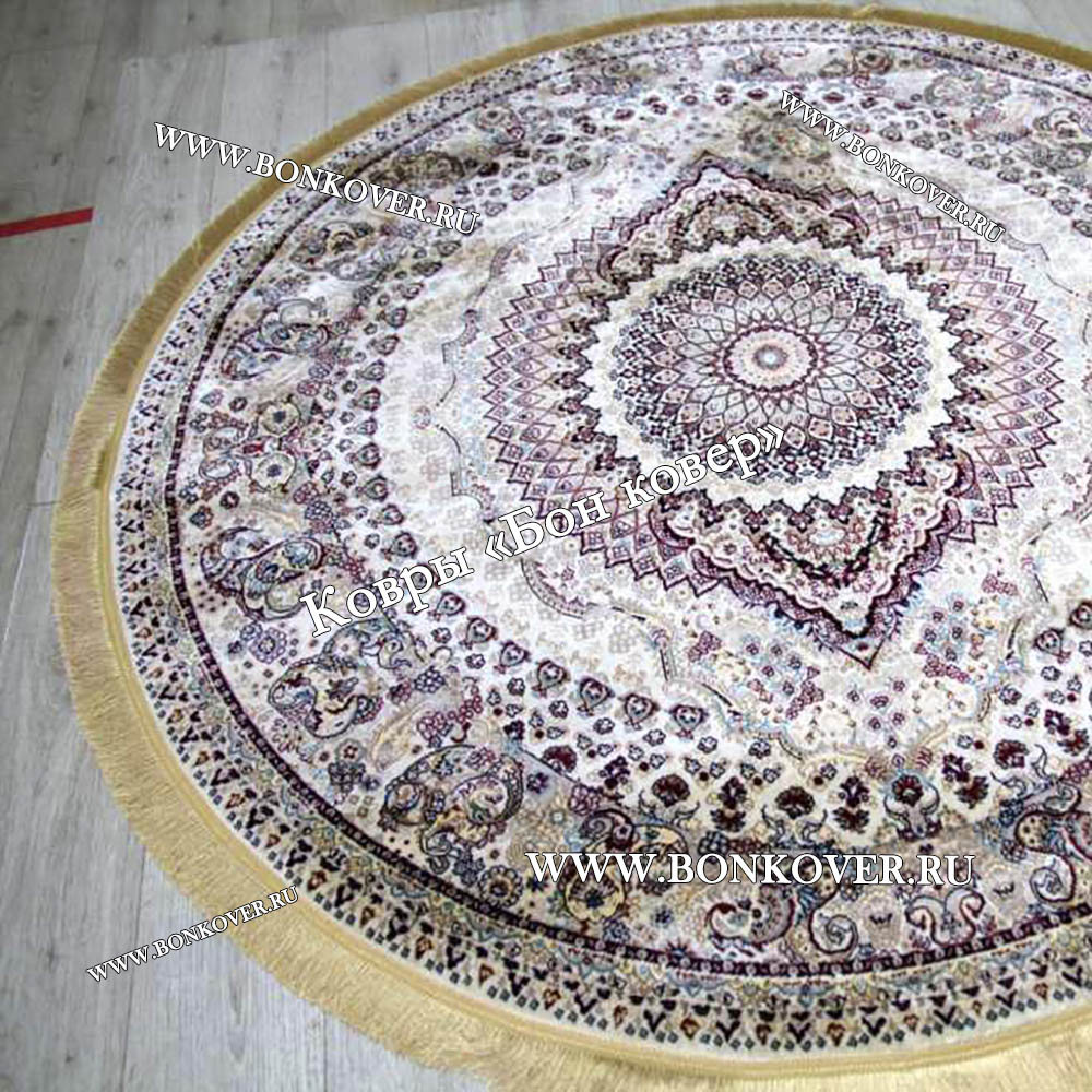 Восточный Ковер Для Гостиной Медальон Дизайн 28748 круг станет превосходным дополнением интерьера, оформленного в современном или классическом стиле. Мягкое, но прочное, ковровое изделие обеспечивает тепло- и шумоизоляцию, отличается длительным сроком эксплуатации, надежностью, экологичностью и высокой износостойкостью, является отличной защитой от повышенной влажности в помещении и утеплителем для холодного пола. Благодаря качеству материалов, ковер не деформируется, сохраняет форму под тяжестью предметов мебели. За его поверхностью легко ухаживать.