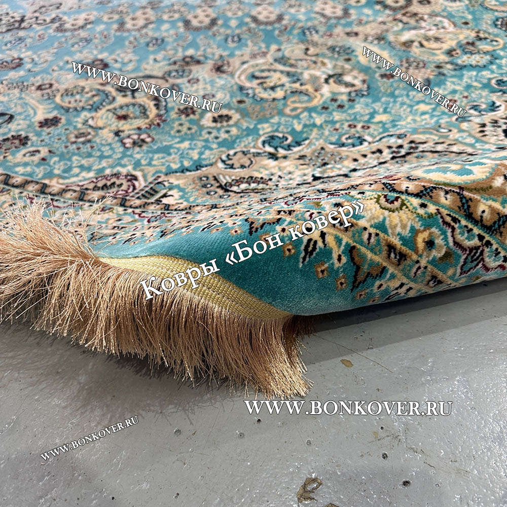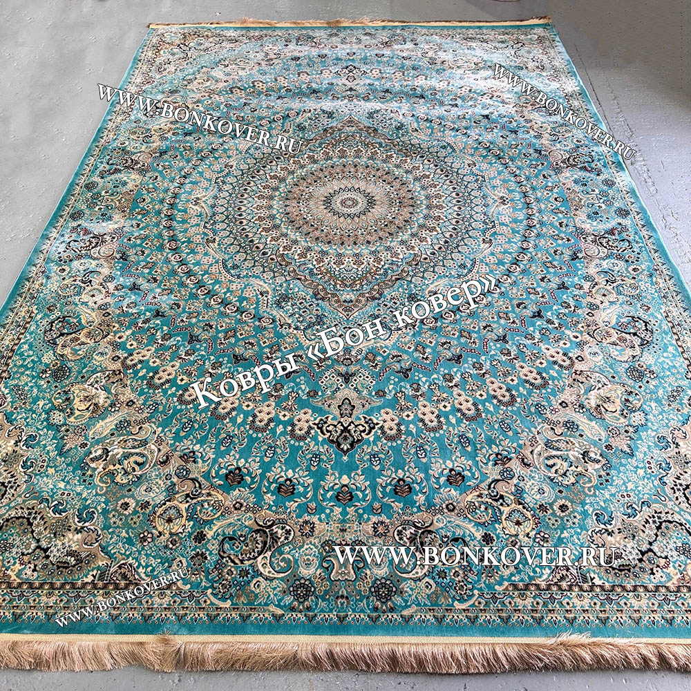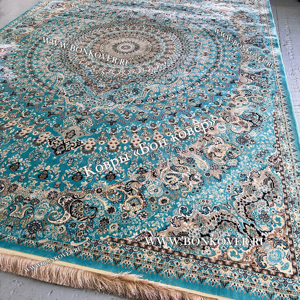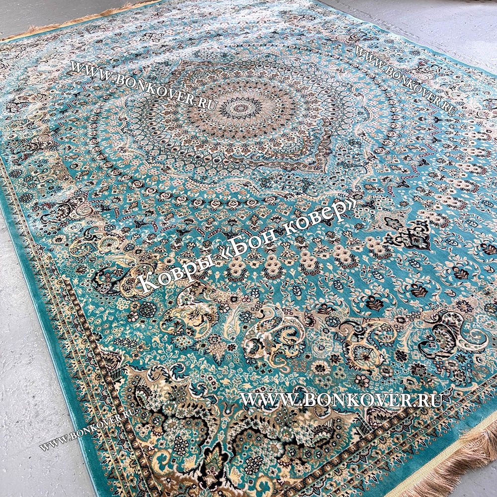 Красивый Восточный Ковер Для Гостиной Медальон Дизайн 28767 Бирюзовый наполняет интерьер помещения теплом и уютом, гармонично сочетает в себе изящество и стиль. Он создан из экологически чистого сырья, прочный и долговечный.